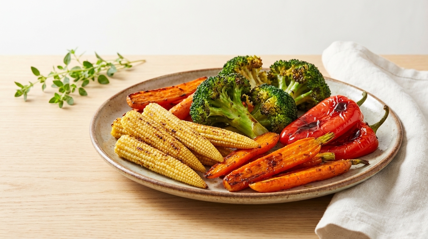 Это настоящий праздник вкуса с минимальными усилиями. Нарежьте крупными кусками болгарский перец, цукини, баклажан, красный лук и помидоры черри. Добавьте оливковое масло, соль, прованские травы и чеснок. Перемешайте и отправьте в аэрогриль при 200°С на 15 минут, встряхнув корзину в середине. Овощи карамелизируются, становятся сладкими и насыщенными — их можно есть как гарнир, добавлять в салаты или заворачивать в лаваш.