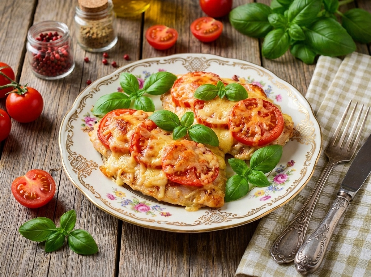 Запечённое куриное филе с помидорами